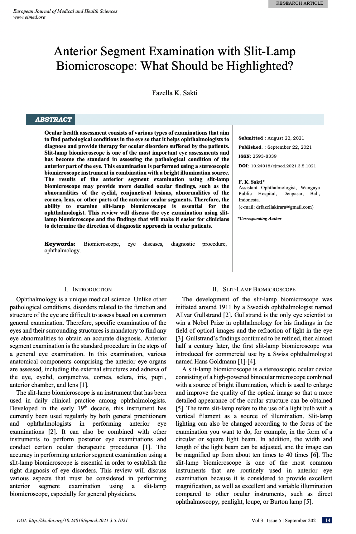 D. Brandner, S. R. Montezuma, J. Yamanuha. (August 2021). “Slit Lamp Examination,” American Academy of Ophthalmology [Online]. Available: https://eyewiki.aao.org/Slit_Lamp_Examination.