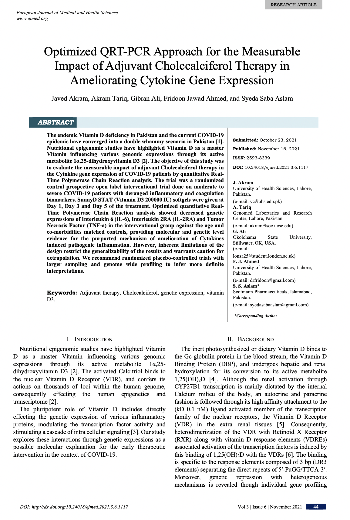 Farooka, Waris M, Aslam SS, Tarar MA, Rafi M, Ahmad A, Rafique N, Bilal M. Vitamin D perspective in front line healthcare workers amid COVID-19. European Journal of Medical and Health Sciences. 2021; 3(4): 65-72.