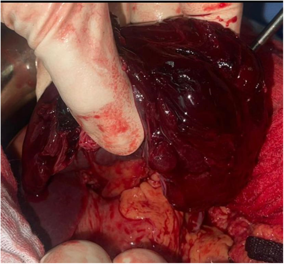 Fig. 2. Intra-abdominal view of the ruptured spleen.